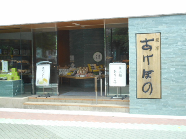 ”銀座あけぼの”がネーミングのようですが、人形町に会社があり、その近くのショツプがここで、和菓子、スイーツの販売をしています。デパート、駅地下などにも、多くのショツプがあります。最近は、洋菓子系販売に路線拡大しているようです。