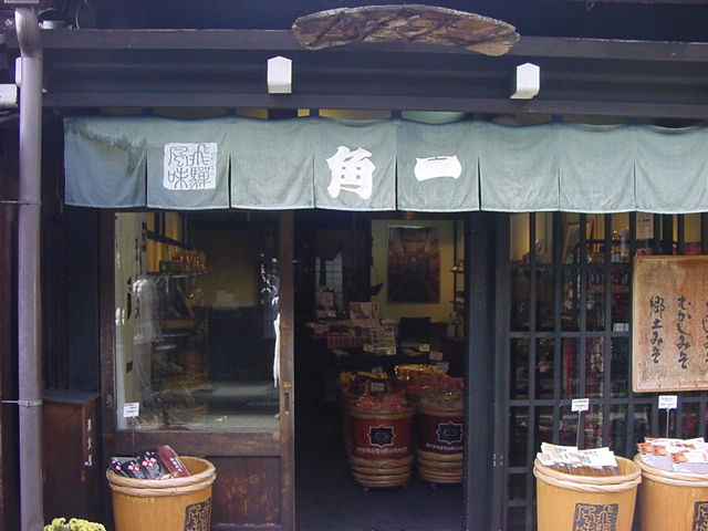 高山市の中でも古い街並みが残り、多くの観光客が集まる地域にある老舗です。店頭にも店内にも味噌樽が並び、素朴な雰囲気を醸し出しています。前日に旅館で食べた朴葉味噌が美味しかったので、高山土産に田舎味噌を買ったら大いに喜ばれました。