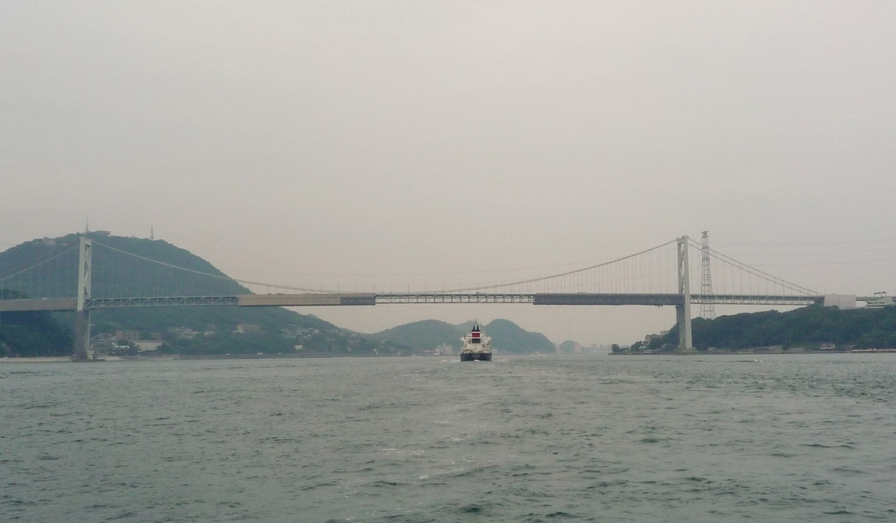関門連絡船の上から、門司港から関門トンネルへの道中、みもすそ川公園側からと眺めました。この橋で本州・九州がつながっているんだと思いながら見るよりも、関門海峡を行き来する船との画、生活に溶け込んだ人々の足としての橋としてその綺麗な姿が印象に残っています。