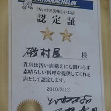 とんねるずの番組から、「きたなミシュラン」も貰っています。