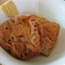 隠し味は、おでんのだし汁みたいですが、輪ゴムのような麺をおばあちゃんが炒めてくれます。