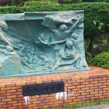 長崎の原爆資料館前にある緑色の四角い像です。遠くから見ると、何かの記念碑かと思いましたが、近づいて見ると原爆の閃光の下で、無数の母と子が灼かれ、ひき裂かれている様子が刻まれていて、原爆の悲惨さが伝わってきます。作者は沖縄出身の金城実さんです。