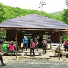大清水から長い林道歩きがようやく終わる地点にある休憩所です。