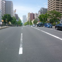 今日は道頓堀川沿いを道頓堀橋から西へ散策しています。そして「西道頓堀橋」にやってきました。大阪中心部には御堂筋など幅広い一方通行の路が多いのですが、ここなにわ筋は片側二車線で比較的車幅が広い道路となっています。江戸時代この辺一帯は全国の各藩から荷揚げ場となっていて古くから橋が架けられていますが、この西道頓堀橋は戦後の都市計画により1959年に架けられています。であるためか交通量が多く多くの人に利用されていますね。