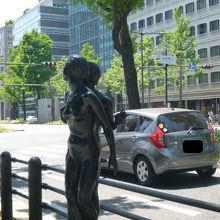 ここ「御堂筋」は大阪の中心部を北から南へと走る一方通行の道路ですが、その流れに乗って歩道を歩いていると、ポツリポツリと彫刻作品を見ることができます。ビルや車、人に見入っていると、気が付かないかも知れません。これらの作品は、御堂筋に来られる方により親しんでもらうように、沿道企業などからの寄付により設置されています。全部で29の作品があります。皆さんもご覧になってくださいね。難波までの時間が短くなりますよ。くれぐれも自転車には注意ください。