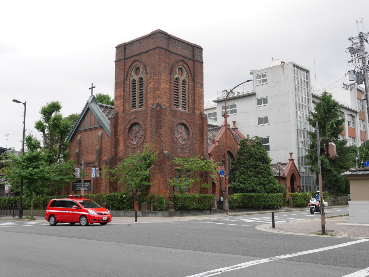 京都御苑の出水門の斜め向かい側の角に建つ煉瓦造りの建物が「聖アグネス教会」です。この聖堂は1898年(明治31年)に竣工した建物で烏丸通りに面する三層の鐘楼が特徴の聖堂です。内部に入る事はしませんでしたが、趣と歴史を感じさせる建造物です。
