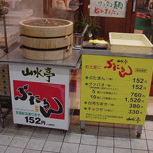 アーケードを中心にたくさんのお店が並ぶ、熊本市中心部の「上通」に立地するお店。熊本ラーメンのお店ですが、すでにラーメンは他店で食べてしまったので、店頭で販売しているぶたまんを。手作りにこだわった味で、おみやげにもなります。