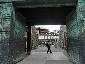 二条城本丸御殿は徳川家光が寛永3年(1626年)に造営したもので、当時建てられていた五層の天守閣は落雷により焼失し、本丸御殿は天明8年の大火による類焼で焼失したが、当時の建造物で唯一現存するのが東櫓門で内堀に囲まれた白い壁が一際美しい。