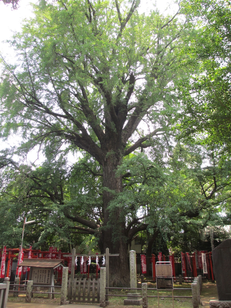 都電荒川線・鬼子母神前駅から3分ほどの所にある法明寺境内にあります。法明寺というよりも鬼子母神というほうが分かりやすいかもしれません。境内に入って左手にあり、樹齢600年、高さ33m、幹の周囲8mと巨木です。長く保存していくため、イチョウは柵に囲まれています。