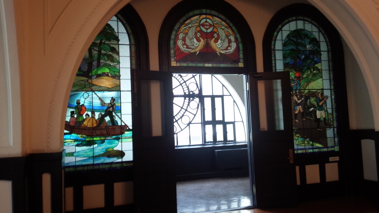館内は素敵な西洋建築でステンドグラスも多様されています