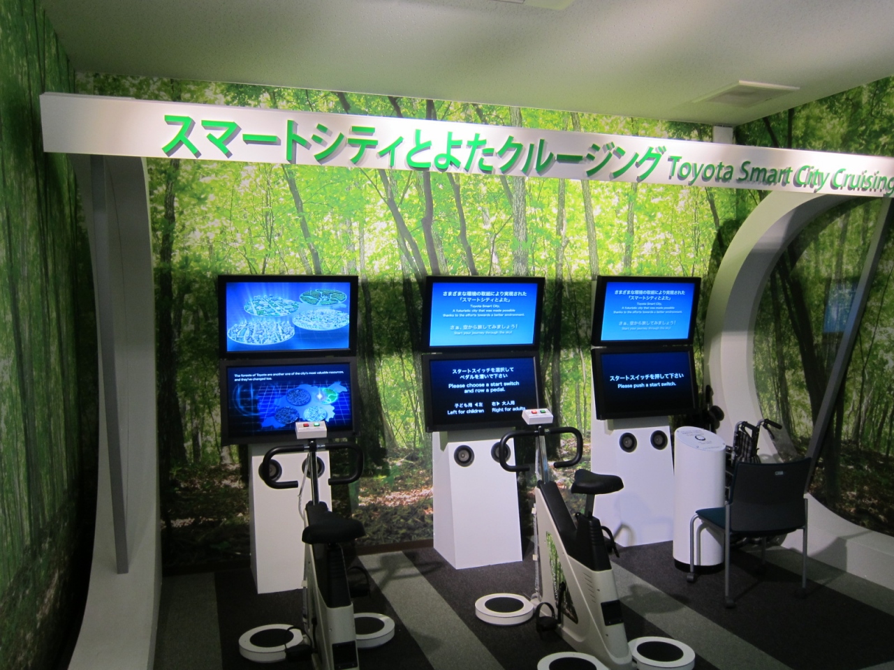 太陽光パネルや壁面緑化などの省エネ技術、低炭素環境を実現に向けてのプラグインや水素カーなどの展示、水素スタンド、蓄電池などある。またクルマの街でもあり、その車を作っている会社は住宅もやっているので、エコ+クルマ+住宅とすべてをひっくるめたエコ環境も展示してある。