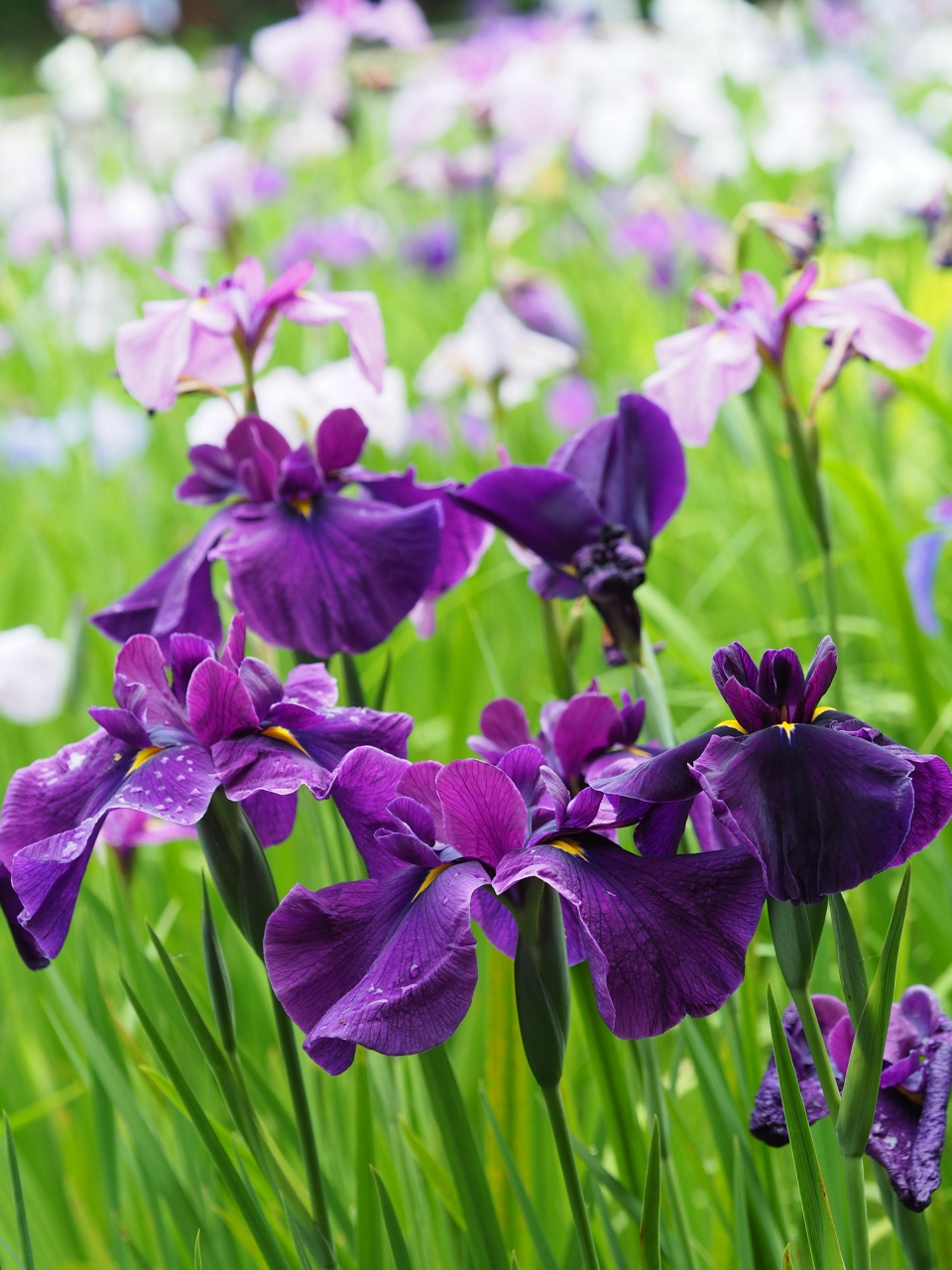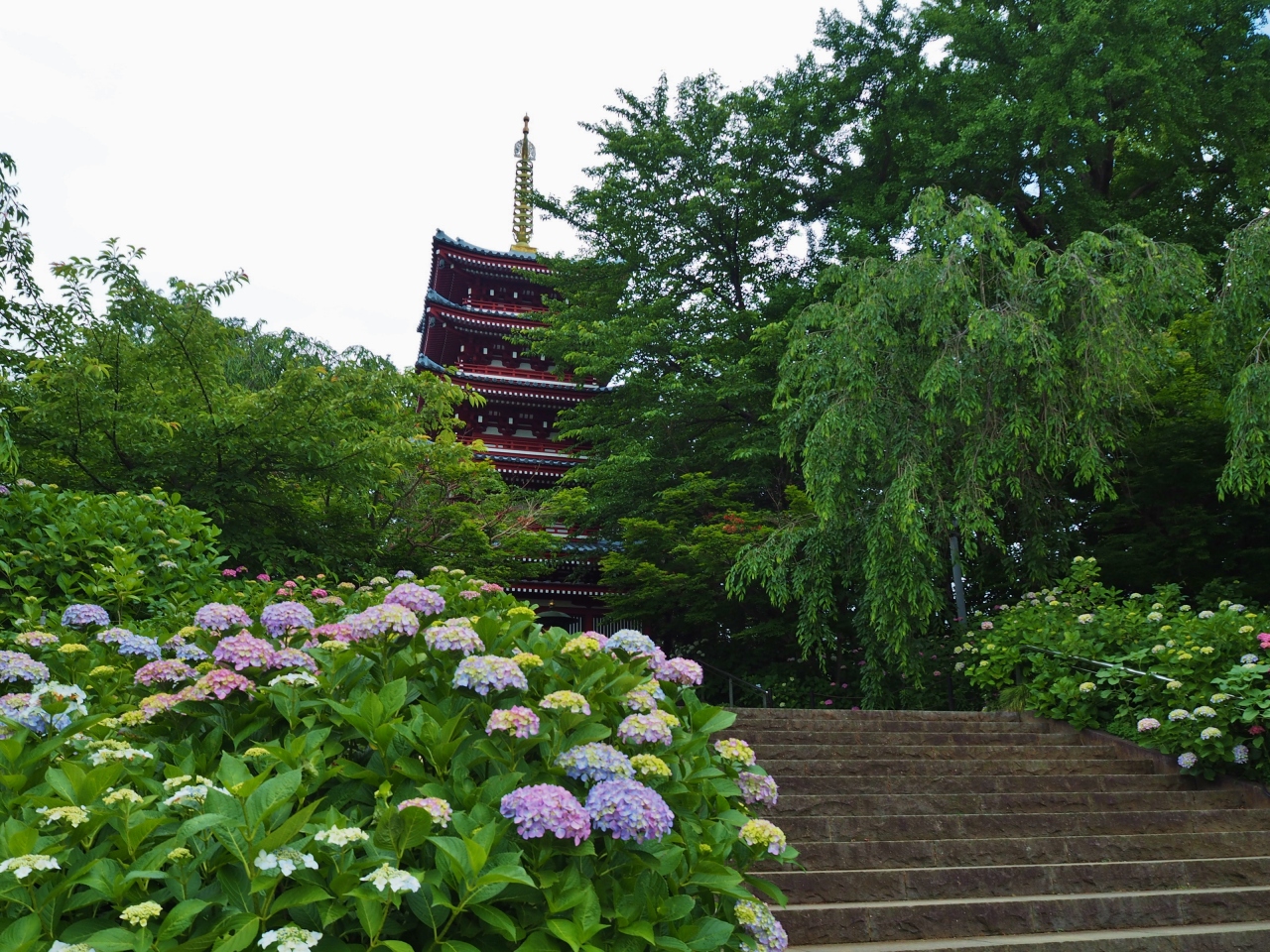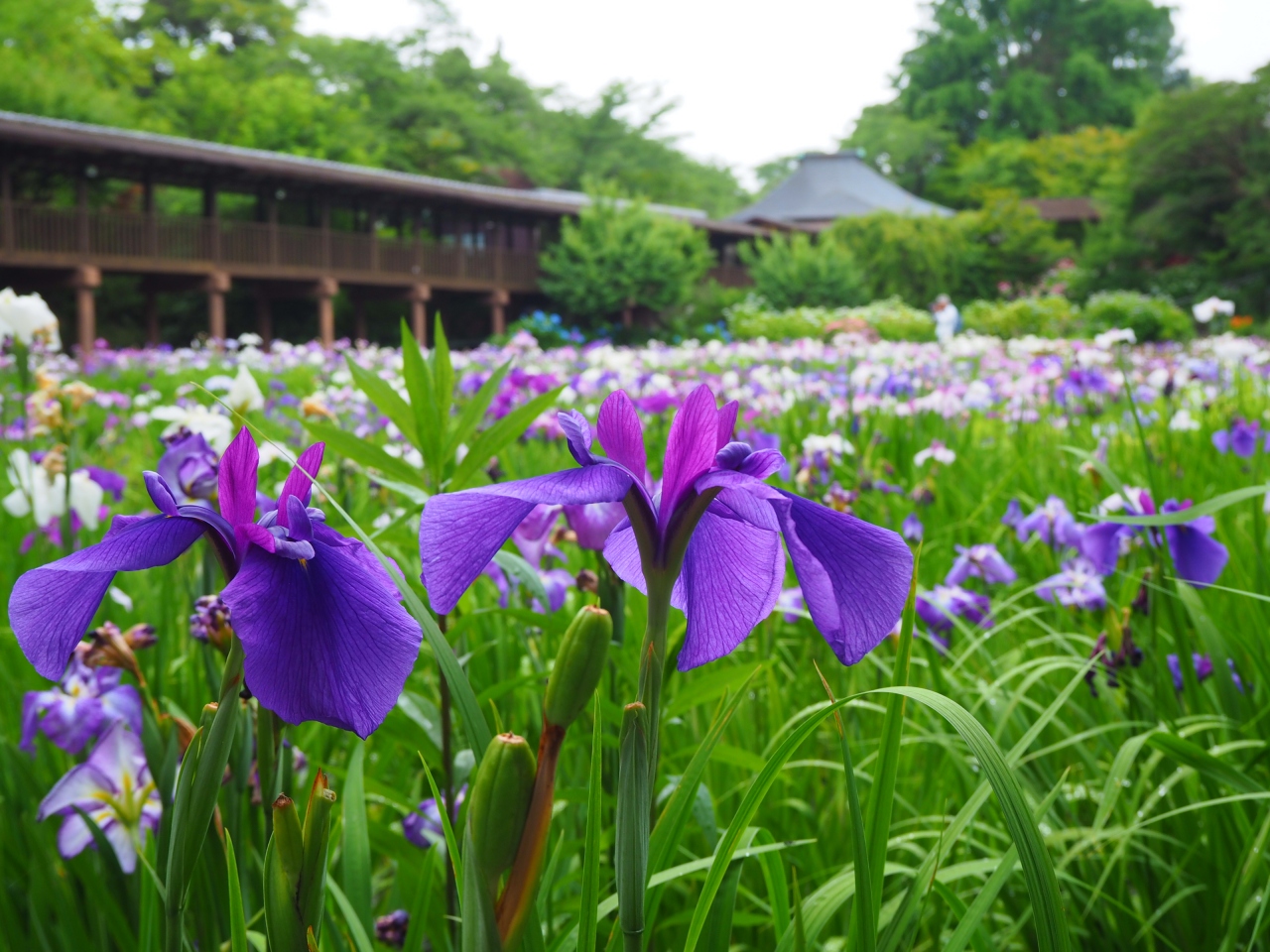 あじさい寺として知られる本土寺。境内は見渡す限りあじさいがひろがり頭上を覆う新緑と新鮮なあじさいがキラキラと輝いて見えます。2016.6.8現在花菖蒲はピークを若干過ぎたもののまだまだ見応えあり後1~2日は見ごろの始まったあじさいとのコラボが見られそうです。