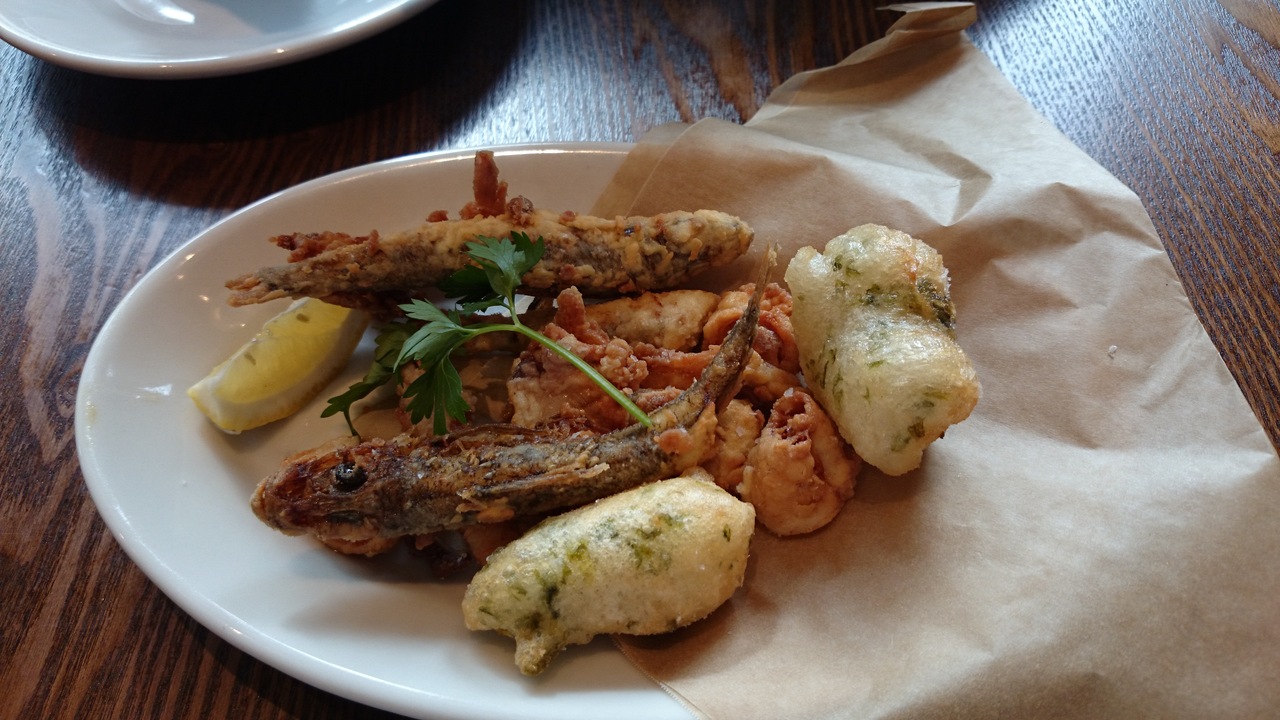 ピザだけでなく、カリカリに揚げたてのシーフードの揚げ物のサイドメニューに、濃厚なパスタに堪りません。