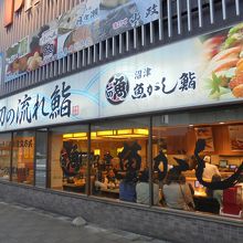JR静岡駅に隣接する駅ビルにあるお寿司屋さんです。「日本初の流れ鮨」とあるので回転すしかと思いましたが、少し違いました。職人さんが握った鮨を運んでくれるというのものでしたが、このシステムってほかの回転すしでも、普通にありますよね。「日本初」をうたわなくてもいいような気がしました。味は、悪くはなかったですが、シャリの握り方が甘いかも。ネタは、そこそこです。
