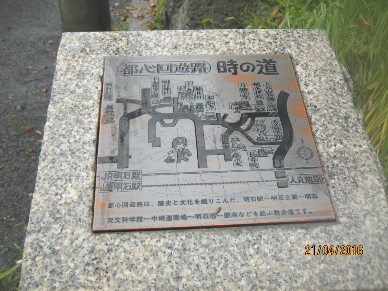 時の道は明石駅から山陽電鉄の人丸前駅までの約2kmの歴史散策の道です。その道の表示の石柱は十二支がその順番を示しています。明石市立文化歴史博物館や明石市立天文科学館などもその道にあります。寺院や教会などの歴史的を刻んだ場所が多くあります。