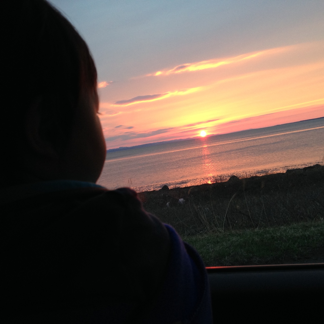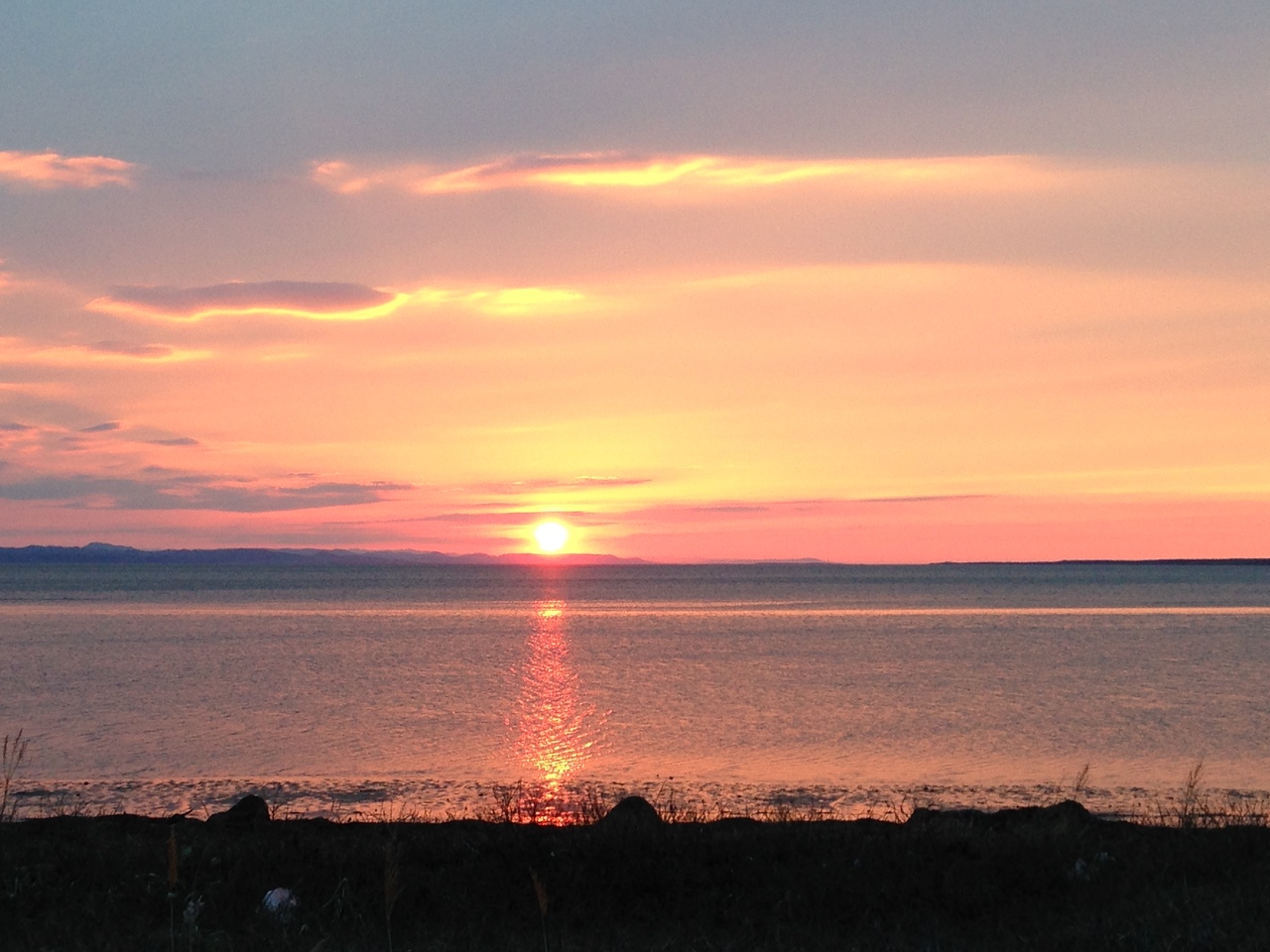 広い湖なので夕陽が海に沈んでいくように見えました。何とも幻想的で綺麗で良かったです。