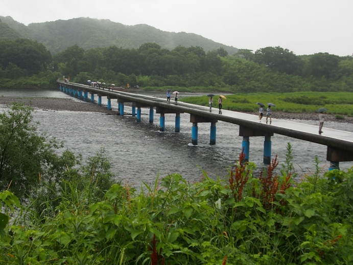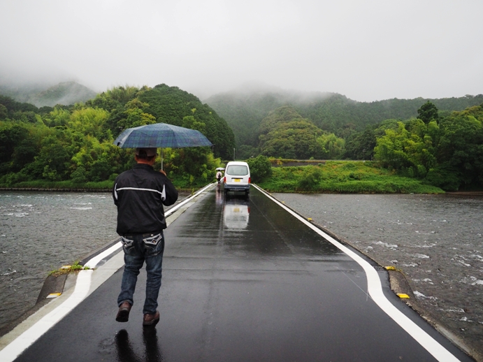 四万十川の一番下流に位置する沈下橋です。対岸まで歩いて渡りましたが、途中軽トラが後からやってきました。もちろん地元の人達には生活に必要な橋です。クラクションを鳴らせば高齢者の観光客が驚いて橋から川へ落下するかもしれないし・・