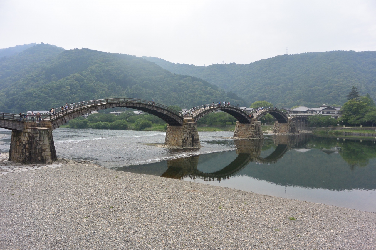 宮島観光の後、山口県にも行ってみたかったので、JRで岩国駅まで行き、バスでこの橋まで向かいました。