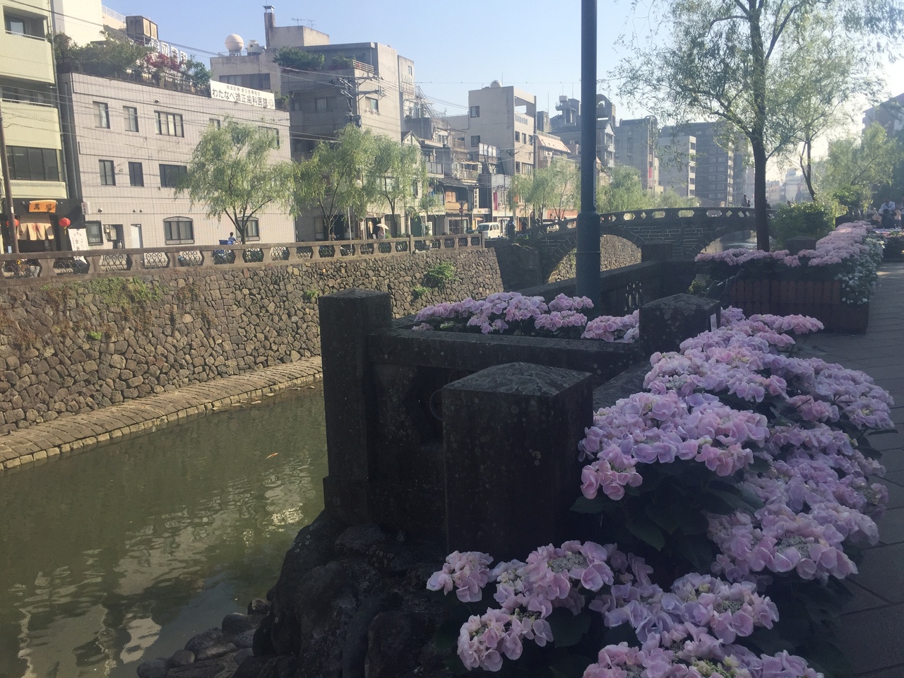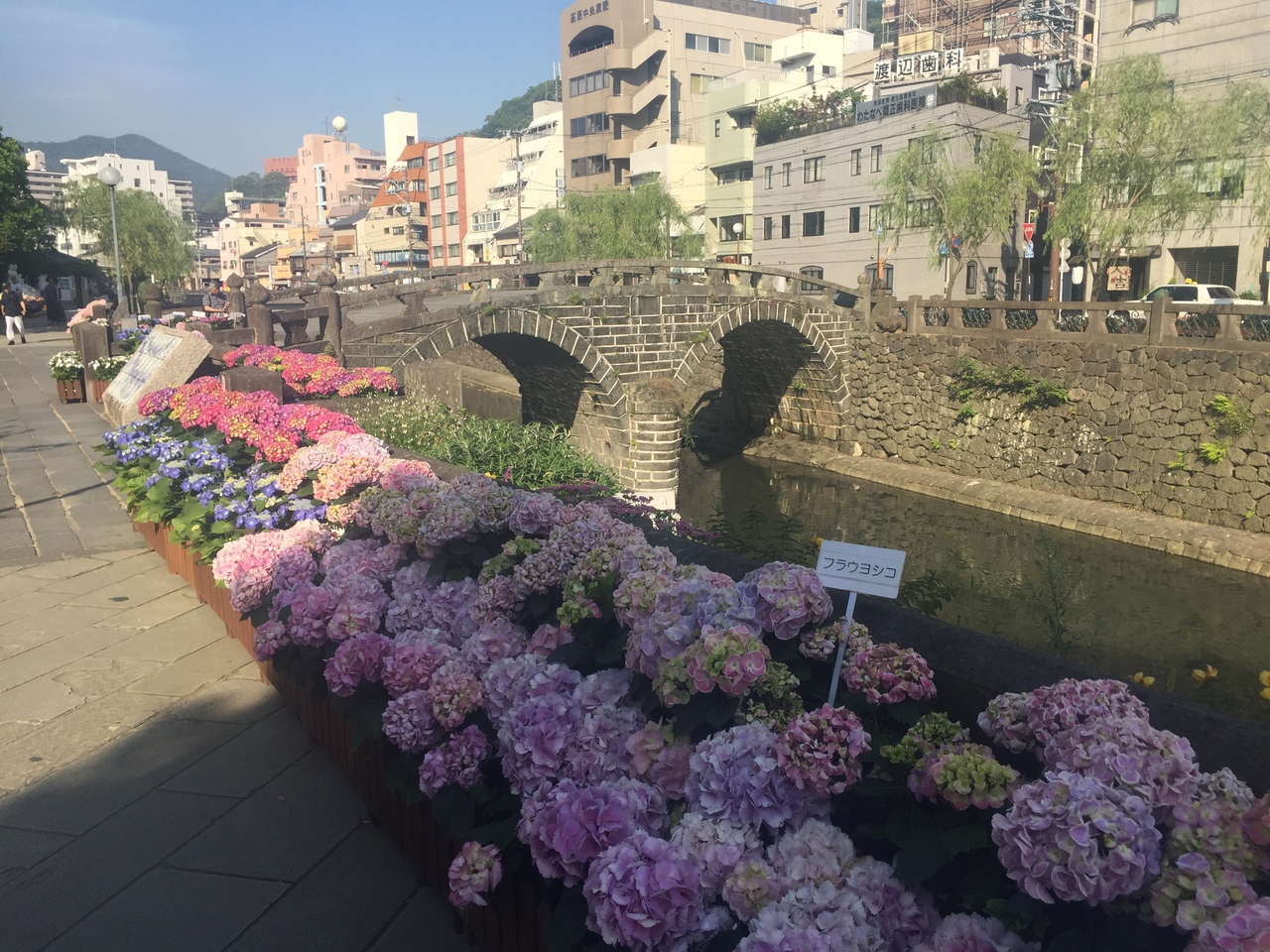 5月下旬から6月中旬は 紫陽花おたくさまつり が開催されていて ここ眼鏡橋も主要スポットになっていた。