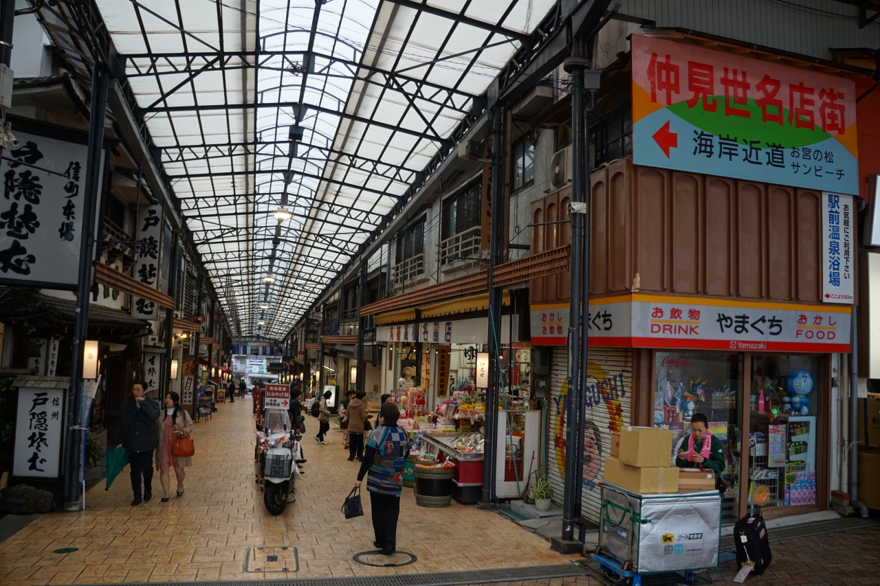 熱海駅前仲見世通り商店街は、熱海駅から熱海の温泉街に向かう通りになるのですが、饅頭屋が軒を並べる熱海駅前平和通り商店街と比較すると、干物屋さんや普通のお土産物の店ばかりでちょっと活気が欠けるような。裏通りというまでではないですが、人通りも少し少ないように思います。