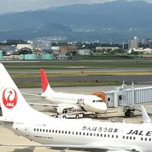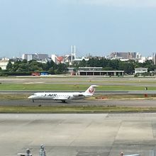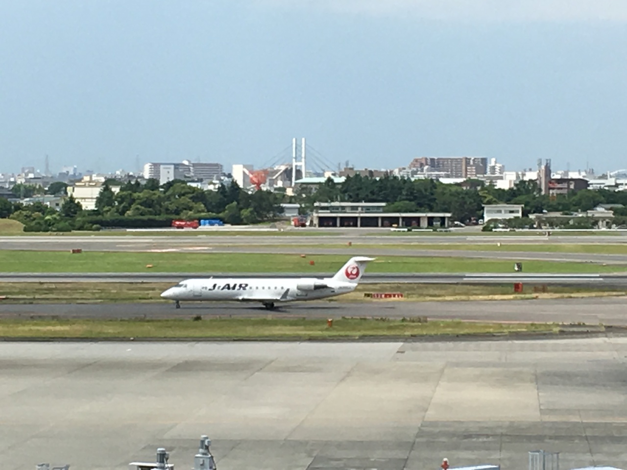 北ターミナルから、中央ビルを挟んで、南ターミナルまで、屋上が展望デッキになっています。大阪伊丹空港には、小型飛行機も発着しているので、多くの種類の飛行機を見ることができます。滑走路は2本ですが、手前の滑走路は小型飛行機用のようでした。