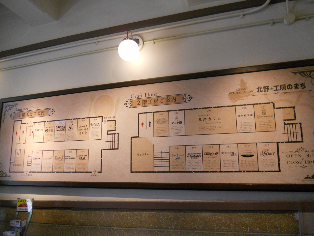 「北野工房のまち」は、古い小学校の校舎を利用している商業施設で、教室に小さなお店がたくさん並んでいます。