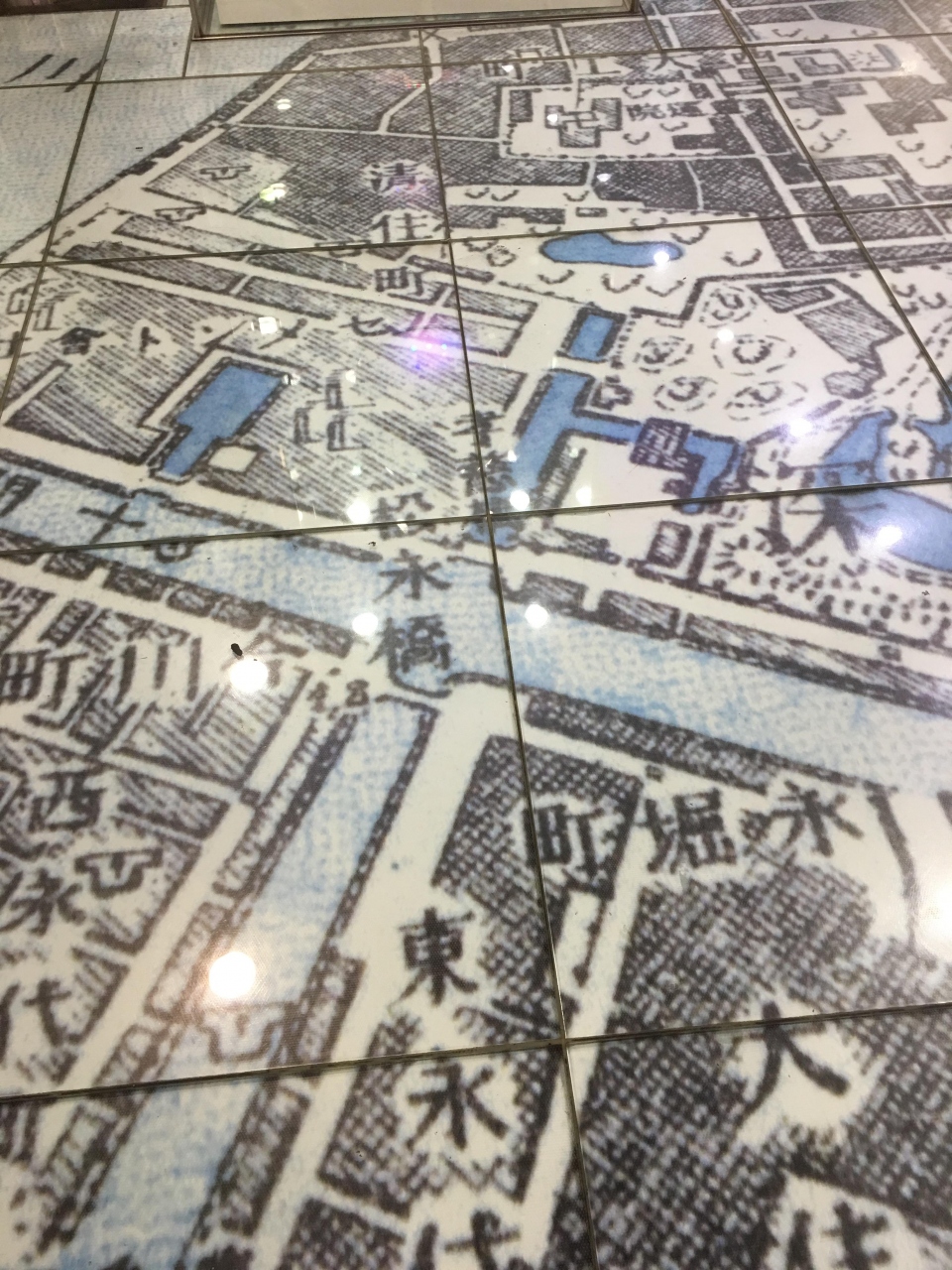 床には江戸の地図が描かれており、出生地などを楽しく探しながら時間を費やします。