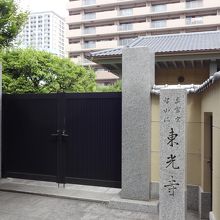 京浜急行仲木戸駅そばの小学校の向いの路地にありました。門は閉ざされ、境内には入ることができませんでした。本堂は、真新しい、コンパクト?な建物です。門前に立つ「神奈川宿歴史の道」の説明板によると、この寺の本尊は戦国時代に江戸城を築いた太田道灌の守護仏だったといわれます。道灌の「海山をへだつ東のお国より、放つ光はここもかわらじ」との歌が東光寺の名の由来になったそうです。