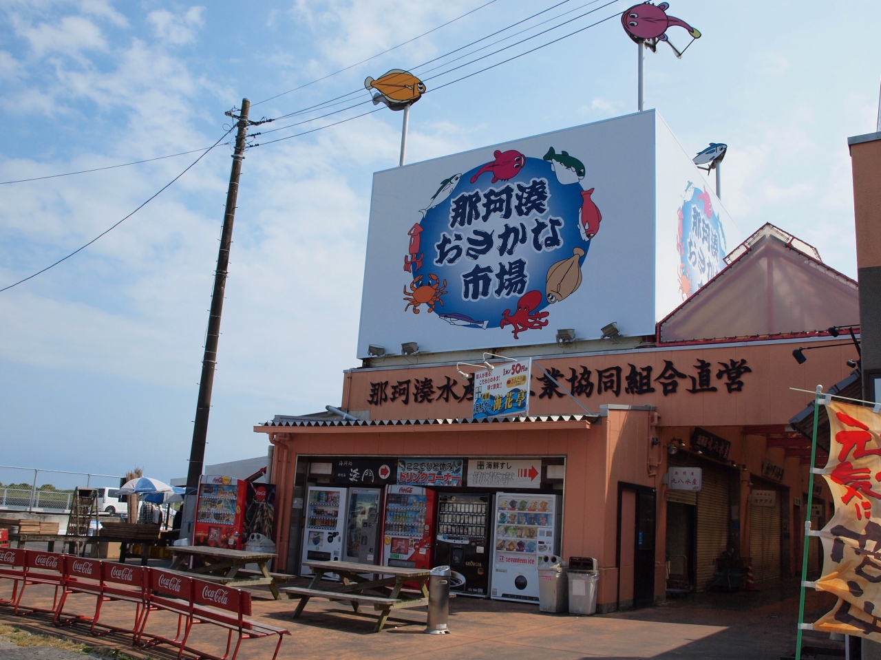 駅を出て左へまっすぐ行くと「おさかな市場」に到着。