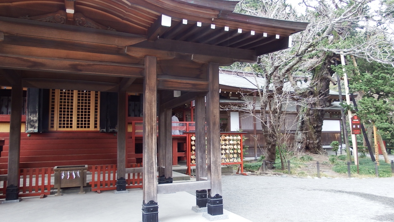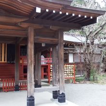 本宮に至る石段のふもとの右サイドにある。本宮の御祭神が応神天皇で、その息子さんの仁徳天皇がここに祀られている。正面の屋根から伸びる庇の部分がファサード並みに伸びており両サイドにそれを支える柱が何本かある。背後には儀式殿がある。