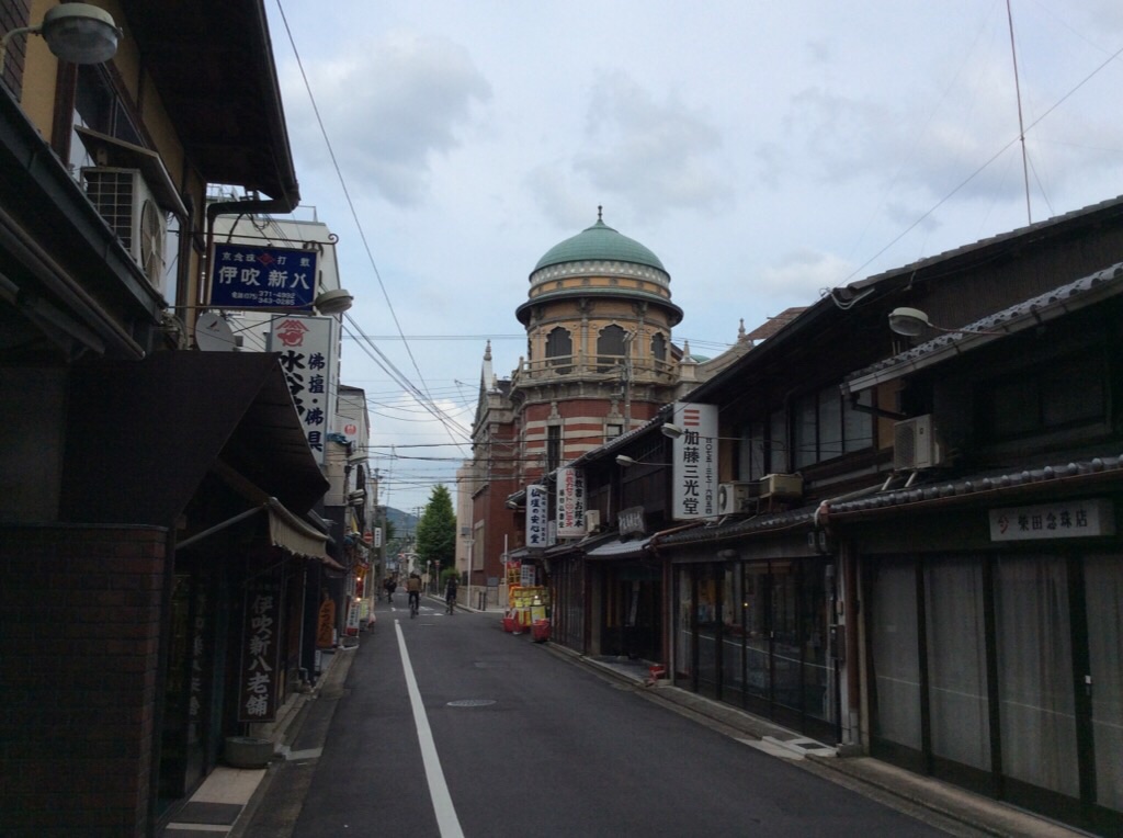 西本願寺の正門から門前町に入ると見えてくるレンガ造りの建物です。重要文化財の本願寺伝道院と看板が出ていましたが、一般公開はされていないようでした。真宗信徒生命保険会社の社屋として建設されたものだそうです。周囲の風景とのコントラストが面白かったです。