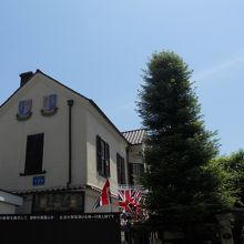 「英国館」は、神戸北野の「北野通り」沿い、「ラインの館」の向い側、西から「ベンの家」「フランス館」と並んでいる3軒の洋館の一番東側にあります。