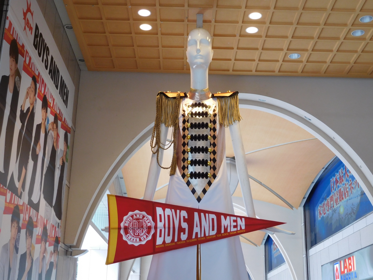名鉄百貨店 メンズ館の1階エントランス前に、巨大なマネキンが出迎えてくれます。訪れた時は、ボイメン(BOYS AND MEN)とコラボした衣装を着ていて、ファンの方らしき人達が写真を撮ったりしていました。名古屋には数年振りに訪れましたが、名古屋駅に来た際は、今回はどんな衣装を着ているのかな?とわざわざ訪れたくなってしまう場所です。(写真を撮ってすぐに終わってしまいますが...。)