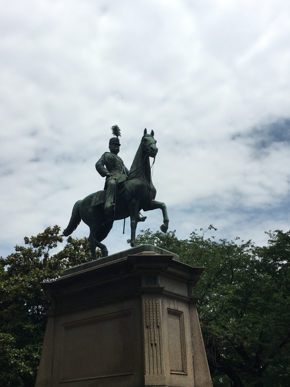銅像は公園内の中央部分のいっかくにありました。近くには動物園の入り口があります。