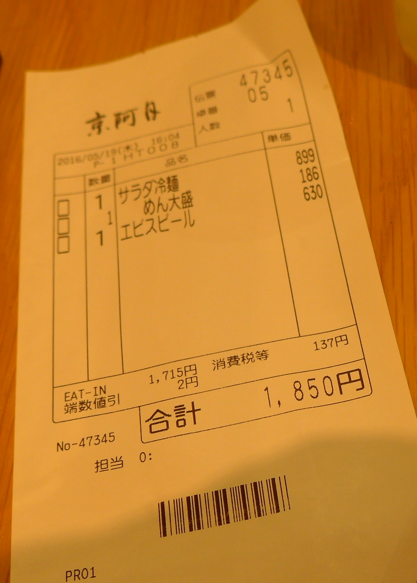 サラダ冷麺たべたがとてもおいしかった.これは夏癖になりそうな味だ.野菜も多く,汁も濃くないしょうゆ味.本当に乾燥した暑さだったので瓶のヱビスビールがとてもうれしい!私は食べなかったが,隣の人が食べていたみつまめもおいしそうがった.