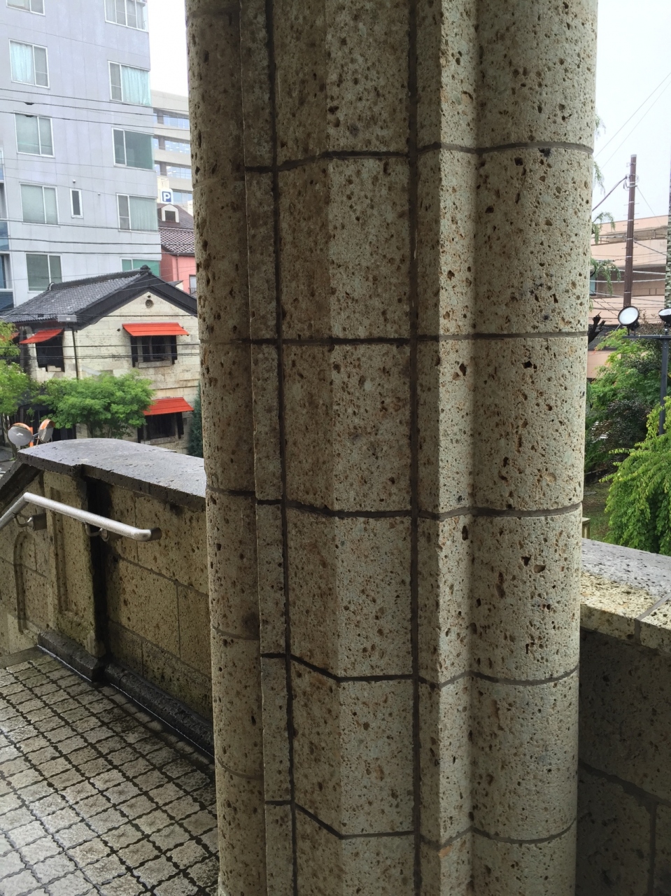 鉄筋コンクリート造りで、大谷石仕上げ。