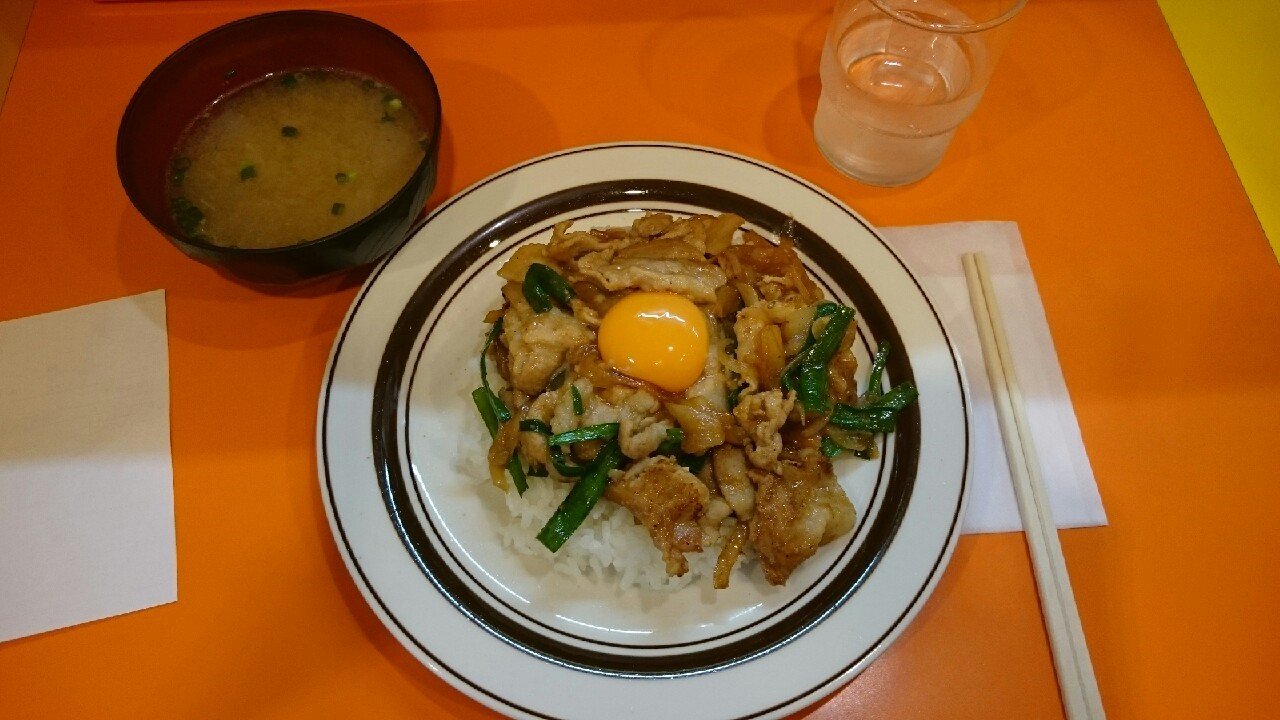 ここの名物オリエンタルライスは豚バラとニラをにんにく風味のタレに合わせた丼ものです。