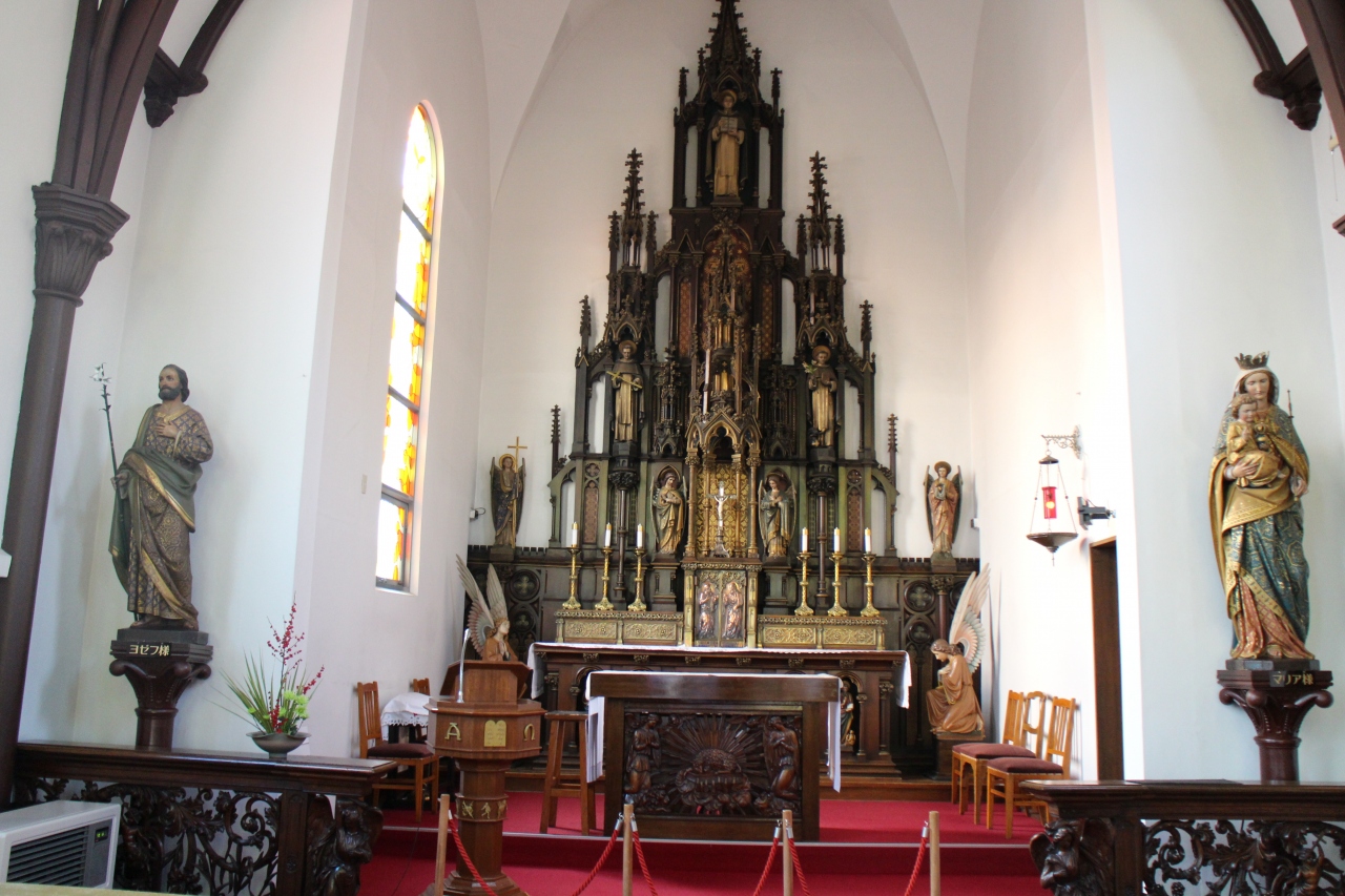 ロマネスク様式を基調とし、切妻屋根正面に尖塔を配置し、左右隅の柱が特徴的な外観となっているこの教会は、1910年(明治43年)に建設された