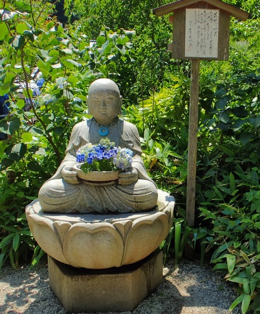 門から方丈までの道横にあじさいが並んでいます。