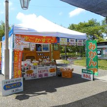 下りは伊勢自動車道最後のパーキングエリアです。自販機とトイレがあるだけの小規模パーキングですが、地元のコケコッコー共和国という有精卵の企業がエリア内で出店しています。「たまごカステラ」という主力商品の他、地元のミカンなども売っています。