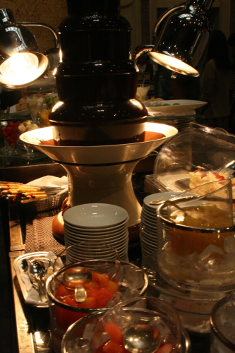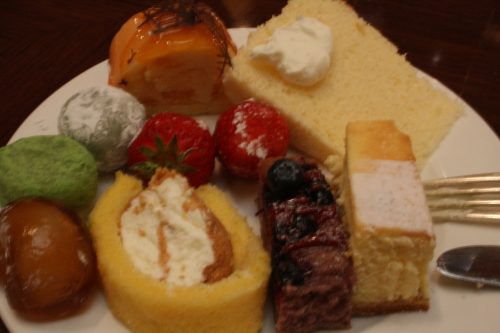 ケーキだけではなく、パンや果物、ポテトチップスなどのスナック類もあり、アイスクリームやチョコレートファウンテンもあり、充実していました。
