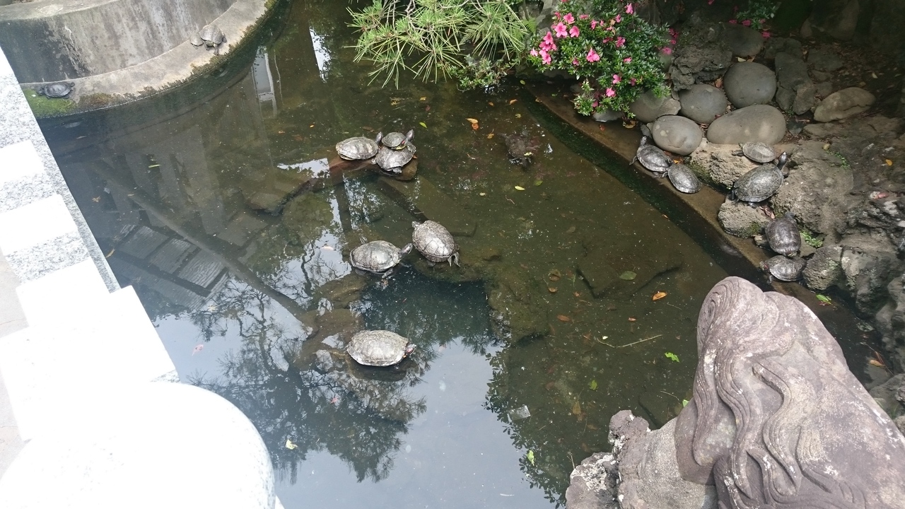 川越の成田山別院は千葉県の成田山新勝寺の最初の別院で、江戸時代末に石川照温上人によって興されました。交通安全の祈願でも知られています。境内に入ると本堂の右側に池があり、亀がたくさんいます。参拝の折には是非ご覧ください。