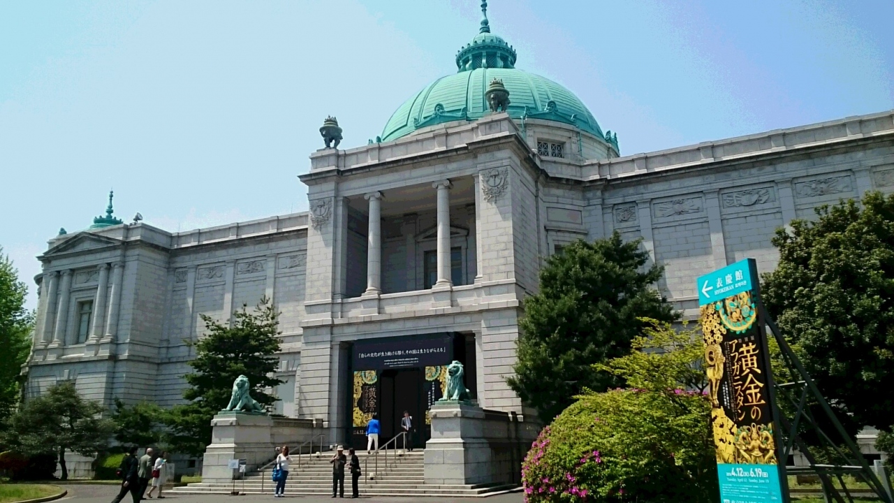 エメラルドグリーンのドーム屋根が美しい表慶館は片山東熊設計による明治時代を代表する洋風建築で重要文化財。