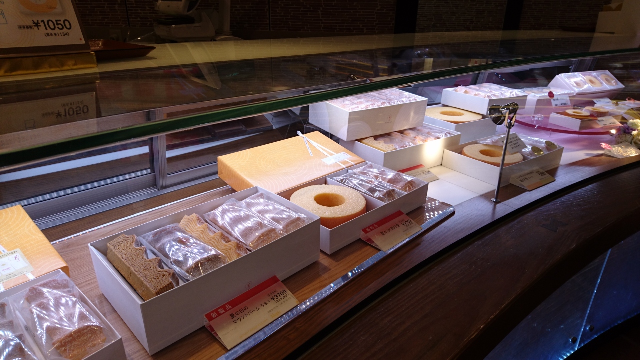 横浜駅から地下道を通って行くと、横浜そごうの地下2階とつながっています。その入口からら入ってすぐ左にあります。こちらのお店は、銀座に本店があるようです。ここのバームクーヘンの周りの砂糖部分がサクサクで、美味しいいと感じる部分でもあります。ちょっと高めですが、数量限定で切り落としの様な部分も売られており、3つ入って税込み700円ちょっとと、お買い得ですよ!