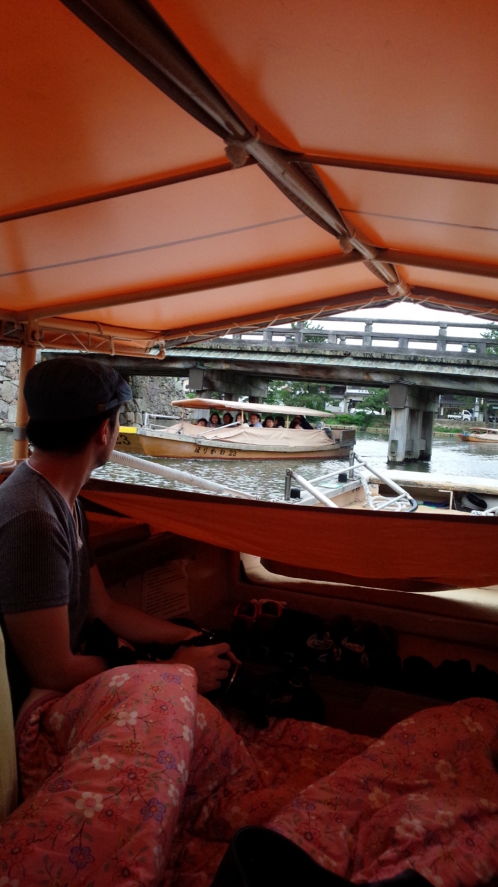 橋のくぐり抜けでは、船の屋根が下がってきてうつぶせにかがみながら通りました