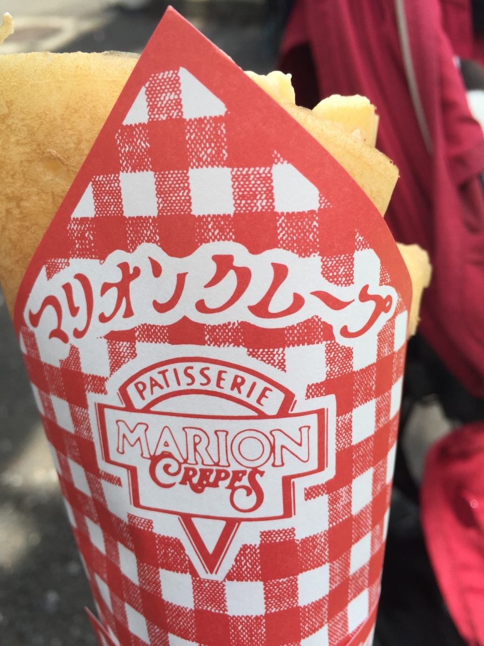休日に伺いました。少し混雑していて何組か待っていました。サンプルを見てバナナの入ったクレープをお願いしました。バナナとクリームが入っていて400円ちょっとだったと思います。出てきたクレープはバナナは全然カットされておらず、しかもだいぶ柔らかいバナナで、ちっとも美味しくなかったです。
