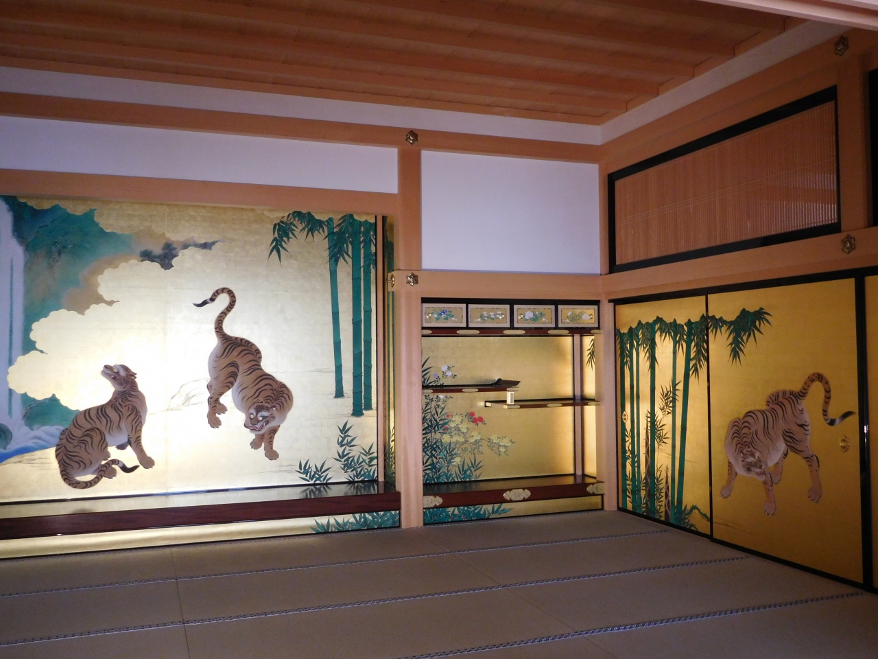 6/1から、本丸御殿の「対面所と下御膳所」がリニューアル公開されていました。入口で靴を脱ぎ、靴をロッカーに入れてから見学するようになっていました。(靴下を履いていない人、ストッキングや裸足の人には、スリッパが用意されていました。)また、大きめのカバンを持っている人や荷物が2つ以上ある場合は、荷物を入れるコインロッカーに案内がありました。真新しい畳の上には、通路となるマットが敷かれていました。部屋ごとに異なる題材で床の間絵、襖絵などが描かれ、絢爛豪華に彩られていました。フラッシュをたかなければ、写真撮影が可能なので、各部屋ごとに写真を撮る事が出来ました。とても見ごたえがありました。また、名古屋城の入場料で、本丸御殿も見学出来たので良かったです。
