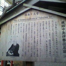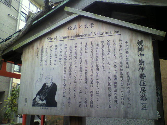 両国散歩。てくてく…。吉良邸跡の本所松坂町公園のすぐ近くにある飯澄稲荷神社の横に「鏡師中島伊勢住居跡」の案内板がありました。