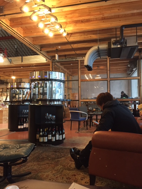 アメリカの西海岸にでもありそうなガレージのような天井の高いお店で敷居の高さはありません。店内に入ると、焙煎機が置かれたコーヒーカウンターが目に入ります。コーヒーは最近になって扱うようになり、お酒が飲めない人でも楽しめます。店内の一角にソファや椅子が置いてあり、そこでコーヒーやワインが飲めるようになっています。ワインはエノマティックというワインサーバーを使って、プリペイドカードでサーバー内の商品を自由に試飲できます。お客さんそれぞれが、思い思いにコーヒーカップやワイングラスを持って、おしゃべりしたり、本を読んだりと、雰囲気の良い空間が出来上がっていて、オススメです。