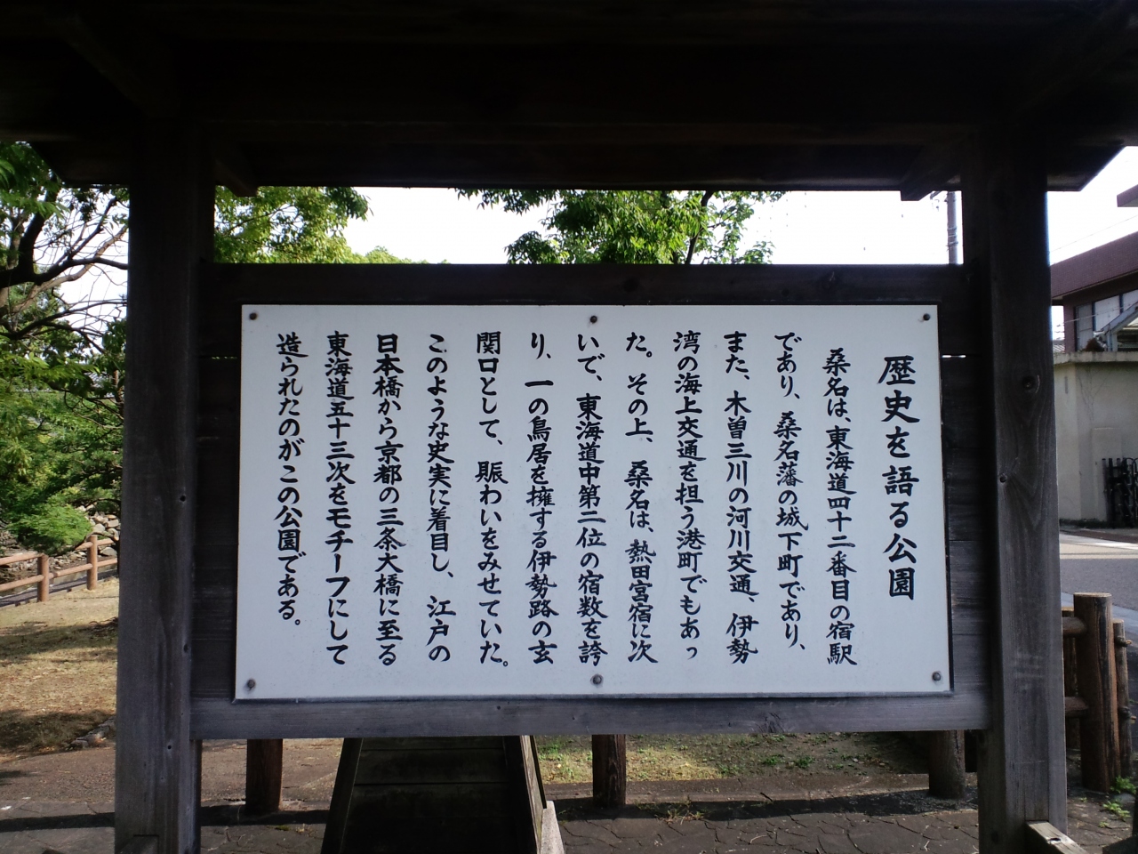 桑名が昔、東海道の四十二番目の宿駅だったことから、東海道五十三次をモチーフに造られているそうで、歩道には石で造られた富士山や日本橋などもありました。